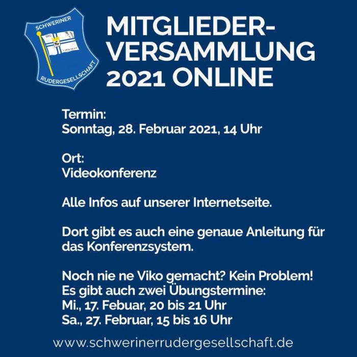 Ungewöhnliche Zeiten erfordern ungewöhnliche Herangehensweisen. Die Mitgliederversammlung 2021 der Schweriner RG findet in diesem Jahr als Video-Konferenz statt. Eine Jahreshauptversammlung mit persönlicher Anwesenheit ist aus Corona-Gründen derzeit nicht gestattet. Wir bereiten diese Online-Sitzung gerade vor. Dazu gehört dann eine ausführliche Anleitung für das Konferenz-System und auch ein Übungstermin.