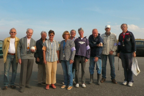Hanning Wüsthoff hatte alles bestens für Samstag, den 20. Sept.2014 vorbereitet. Sogar die beiden Kugeln waren neu und sorgfältig in blauer und weißer Farbe lackiert worden. So lassen sie sich besser unterscheiden und im Gras oder im Seitengraben wiederfinden.